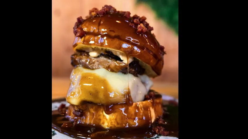 La hamburguesa perfecta para los más carnívoros lleva pan brioche, 180 gramos de carne dry aged 45 días, mayonesa de carne, queso ahumado curado, costilla a baja temperatura, salsa barbacoa casera y bacon bits.