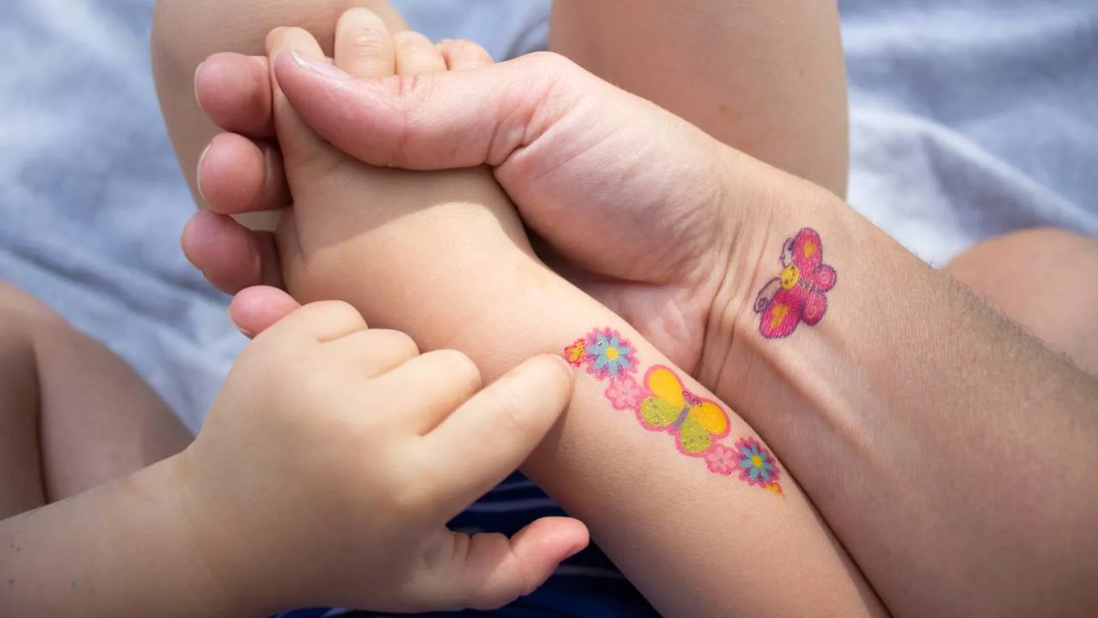 - Quitar el papel transparente del tatuaje y colocar en la piel boca abajo.