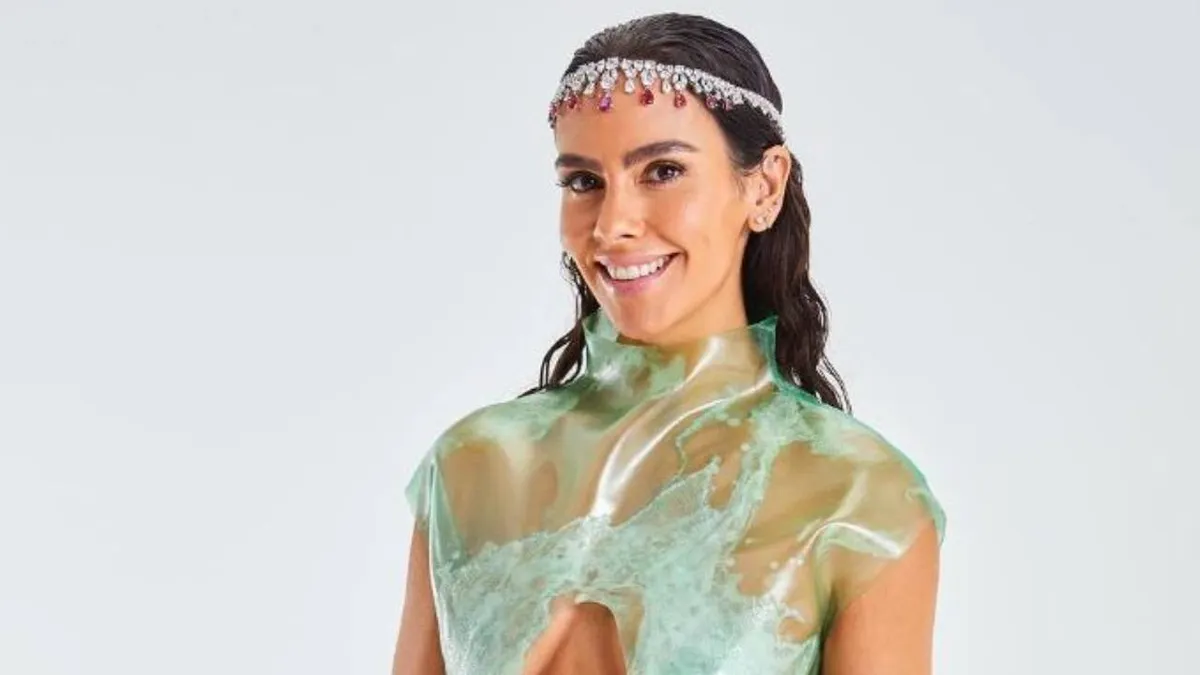 Una combinación de piezas recicladas y biodegradables que lució con el objetivo de concienciar de la importante del agua de la mano de la ONG Greenpeace.