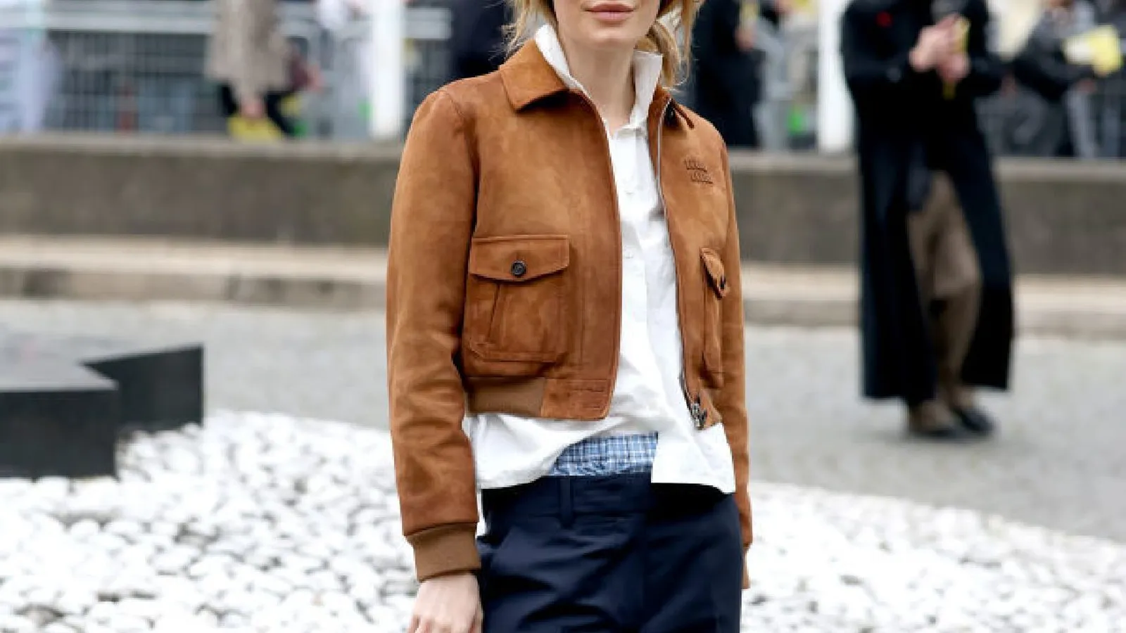 Las colecciones de Miu Miu han sido pioneras en este estilo, presentando faldas y pantalones combinados con boxers que sobresalen de la cintura. La propuesta no tardó en viralizarse, y firmas como Zara han incorporado esta tendencia en sus diseños. Un claro ejemplo es su pantalón de tiro medio con cintura elástica efecto boxer, un diseño que simula la superposición de prendas con detalles de botones y bandas laterales en contraste.