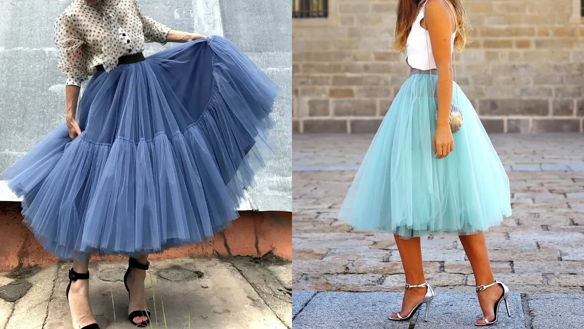 Las faldas de tul con mucho volumen, gracias a múltiples capas o a un forro con can-can, crean un efecto teatral y muy llamativo. Para no sobrecargar el conjunto, lo ideal es combinarlas con una parte superior ajustada, de líneas simples y sin demasiados adornos. De esta forma, se equilibra la silueta y se resalta aún más el protagonismo de la falda.
