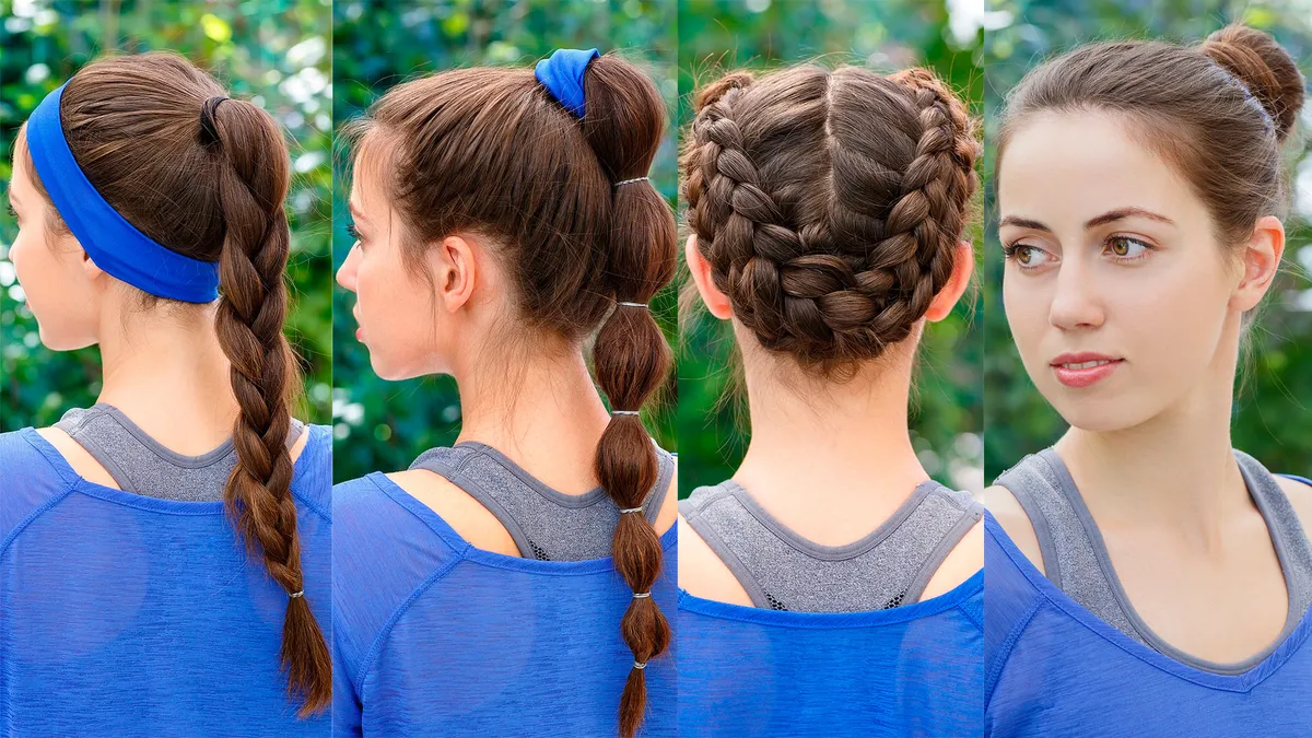 ¡4 recogidos para hacer deporte! Versiona la clásica coleta con estos peinados: coleta trenzada, coleta con divisiones, corona-trenza y moño. ¡Cómodos y más originales!