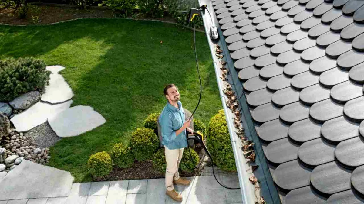 El set de limpieza de canalones y tuberías Kärcher
