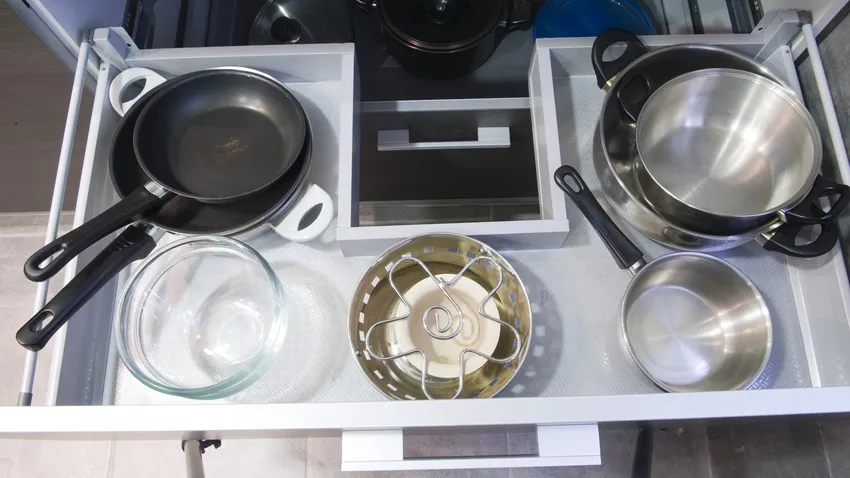 De esta forma tan sencilla, las cazuelas y todos aquellos accesorios de cocina que coloquemos en el interior de nuestros cajones o armarios permanecerán en su sitio.