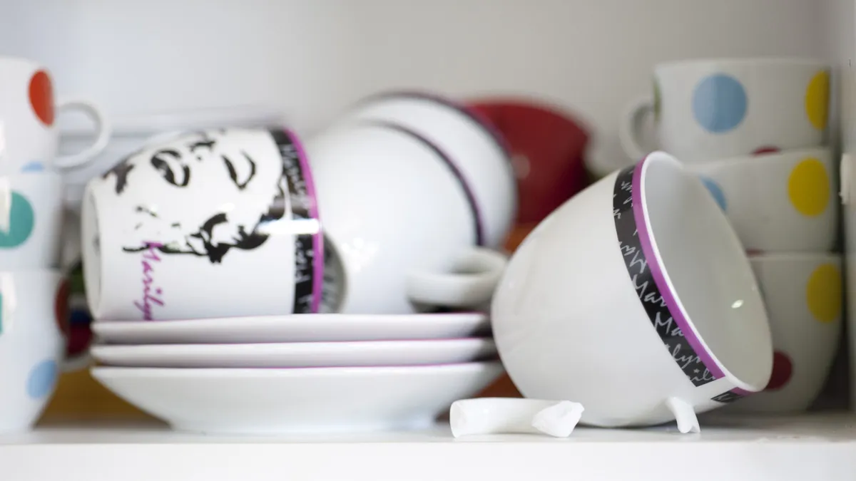 Los accesorios para muebles de cocina como los escurreplatos, los colgadores o las rinconeras, por ejemplo, nos permiten mantener organizada la vajilla y los demás útiles. Nuestro mueble carece de este tipo de accesorios, de ahí que varios objetos estén dañados a causa de los golpes. Es el caso de esta taza de desayuno.