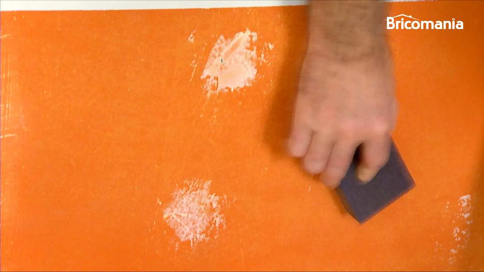 La pared debe estar totalmente lisa y uniforme. Pasa la mano por la pared para asegurarte de que no queden imperfecciones al tacto y quita las pequeñas protuberancias con una lija.