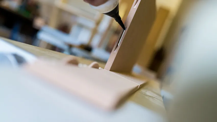 Encolamos las piezas y ensamblamos las tablas introduciendo los tacos planos en sus respectivos rebajes. Para que la unión sea la óptima durante el secado, colocaremos mordazas que aprieten las tablas entre sí.