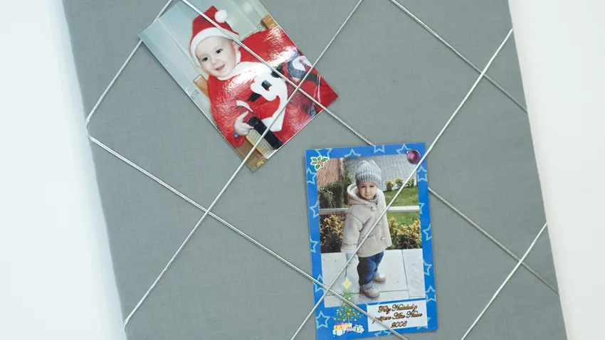 Por último, pegamos el mural en la pared. De esta manera, podréis exponer todas las fotografías que queráis sin llenar de marcos las estanterías de vuestra casa. Y, en estas fechas además, podéis aprovechar vuestro nuevo trabajo para colocar todas las felicitaciones que recibáis.