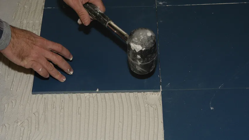 Iremos colocando poco a poco las baldosas, golpeando con una maza para que queden bien asentadas.