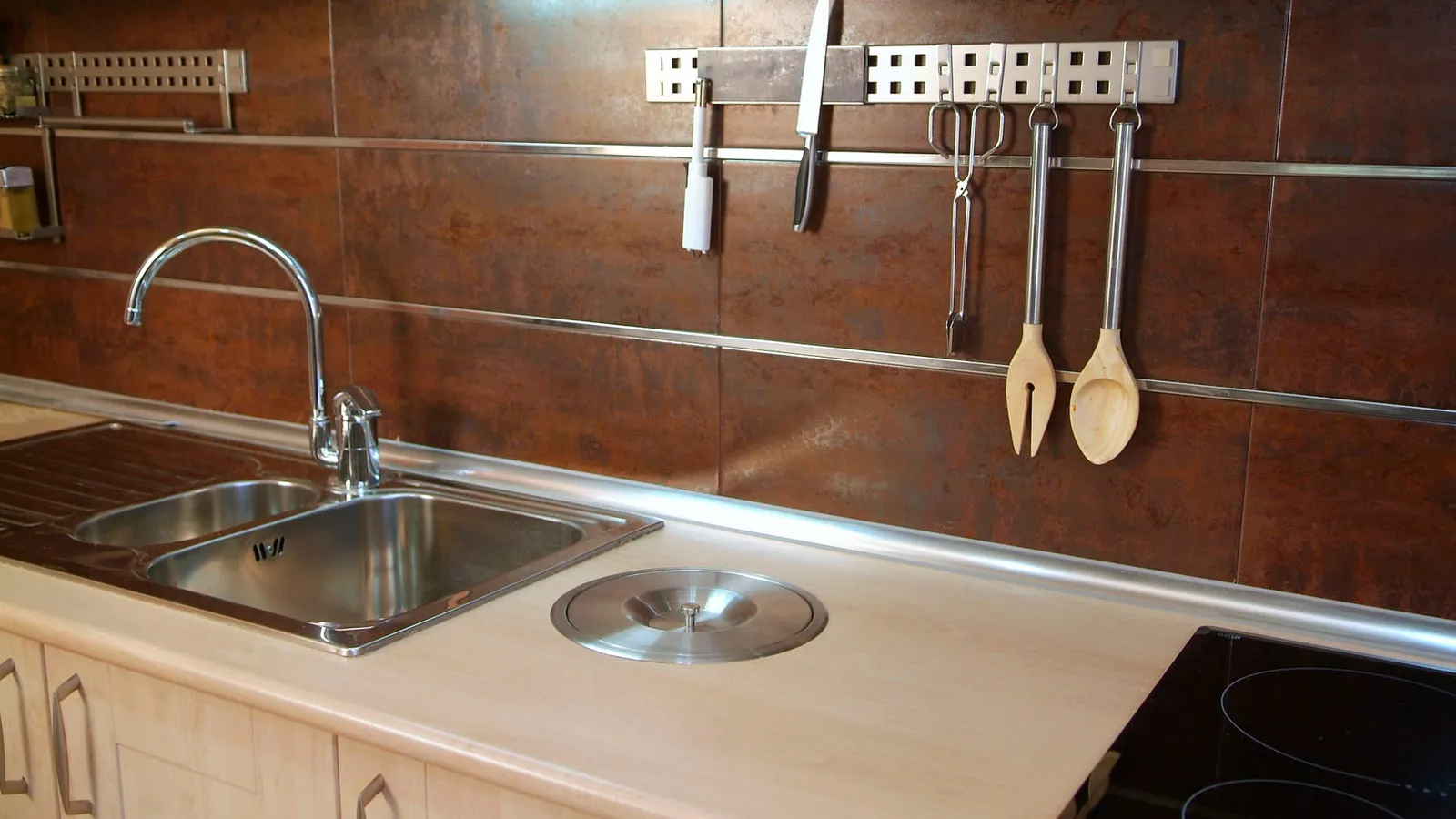 Azulejar antepecho de cocina, es una solución fácil y rápida para cambiar el aspecto de tu cocina, modernizarla o actualizarla. Nosotros vamos a cubrir la zona con unas piezas cerámicas, de color marrón, que contrastarán con el tono haya de los muebles y colocaremos unos perfiles de acero inoxidable, acorde con la decoración de nuestra cocina que presenta varios elementos de este mismo material en diferentes superficies.
