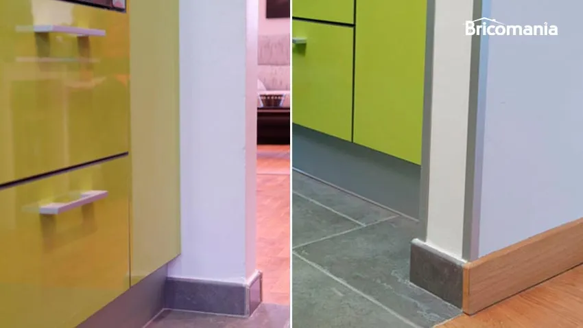 La colocación de cantoneras de aluminio en las esquinas de las paredes, va a proteger los cantos, evitando así que estos se nos deterioren por los continuos roces que sufren al estar en la zona de paso de la cocina al salón.