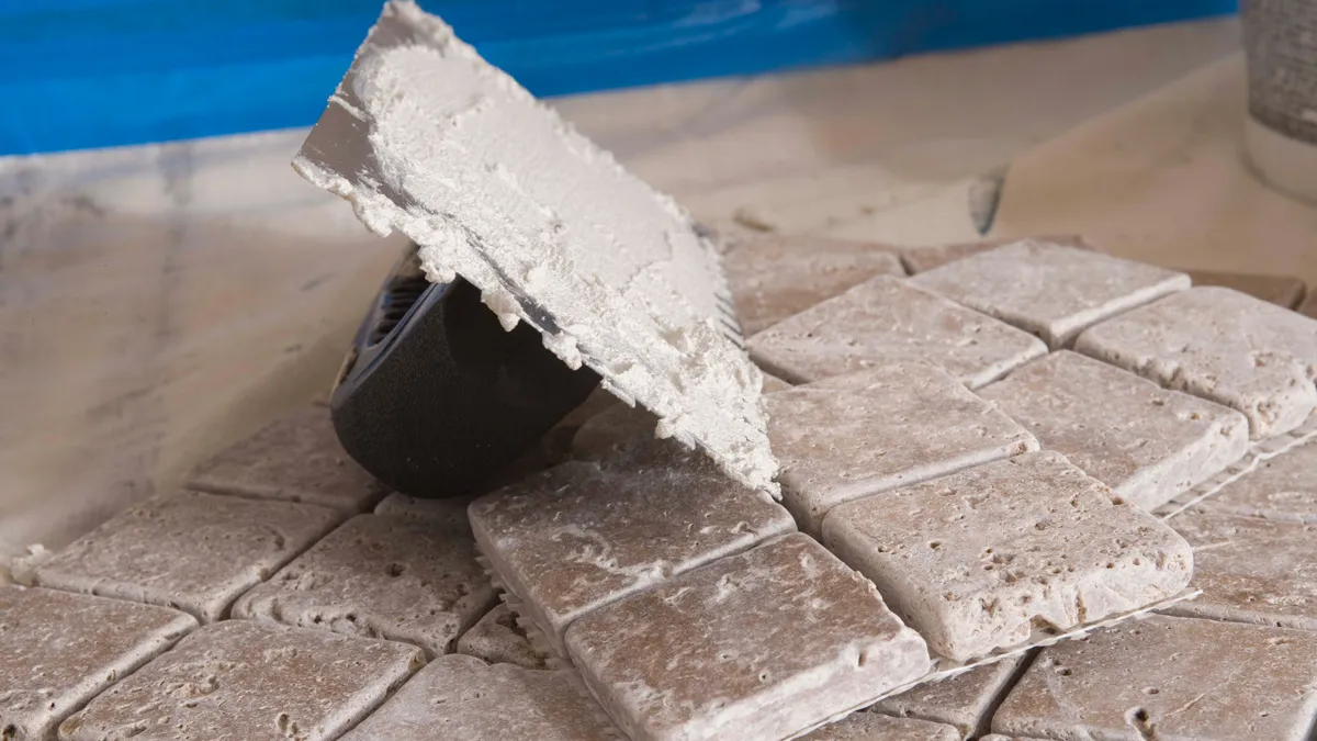 Prepararemos el cemento cola, una mezcla del cemento cola con agua, consiguiendo una pasta que colocaremos sobre el poyete usando la espátula.