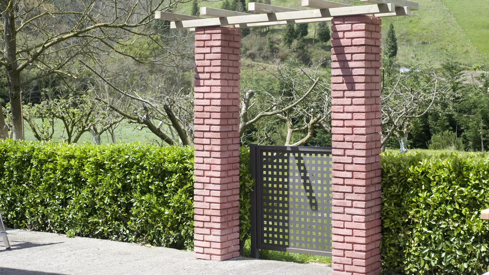 Y ya hemos terminado de construir un pórtico. ¡Éste es el resultado! Una sencilla estructura arquitectónica, con la que hemos conseguido ensalzar la entrada de nuestro jardín. Combinando carpintería y albañilería, hemos realizado un elemento de jardín, elegante, decorativo y muy vistoso.