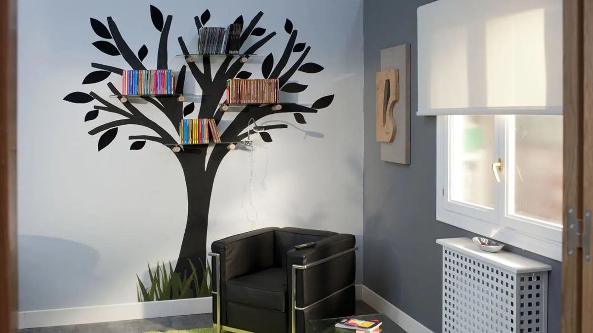 Para hacer una estantería original como este árbol de la lectura, os vamos a enseñar una técnica muy sencilla para dibujar fácilmente un árbol en la pared de una habitación.