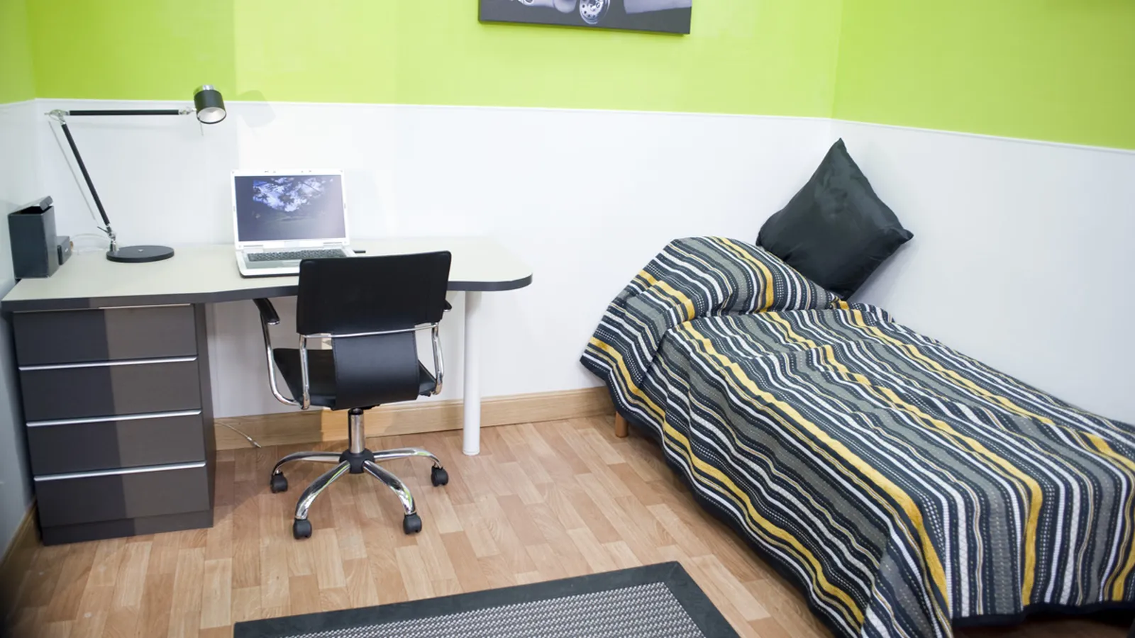 De esta manera tan sencilla, hemos cambiado la decoración de esta habitación. Además, como hemos escogido un material plástico, nuestra pared estará mejor preparada para soportar roces y su limpieza será más fácil.