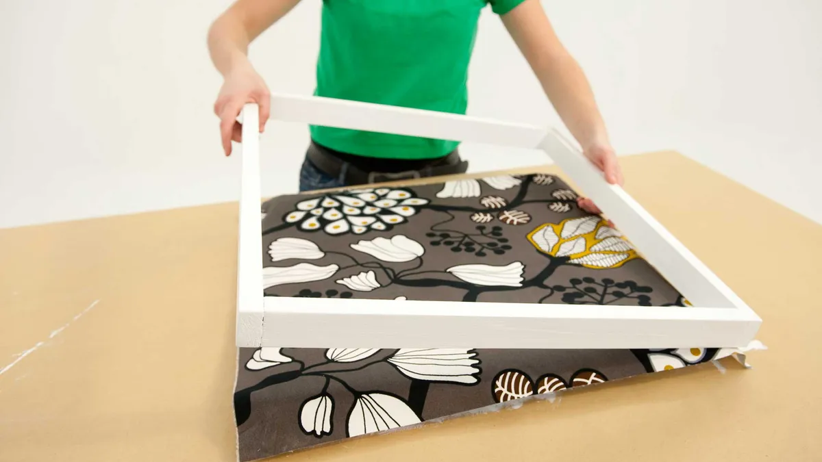 Transcurrido el tiempo de secado que nos indica el fabricante, cubrimos el lienzo con la tela y por último, encajamos el marco.