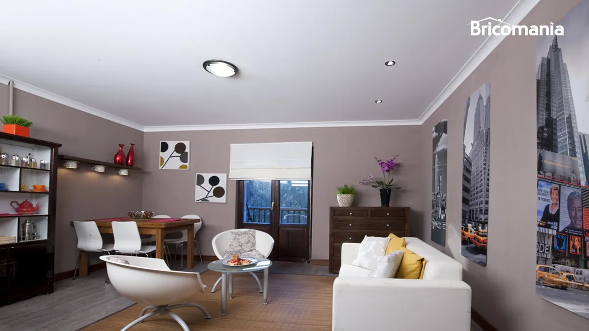 Finalmente, tras colocar los focos en la posición deseada colocáremos la molduras para techo con un adhesivo de montaje. Una tarea sencilla que cambiará la decoración del hogar y aportará luminosidad a la estancia.