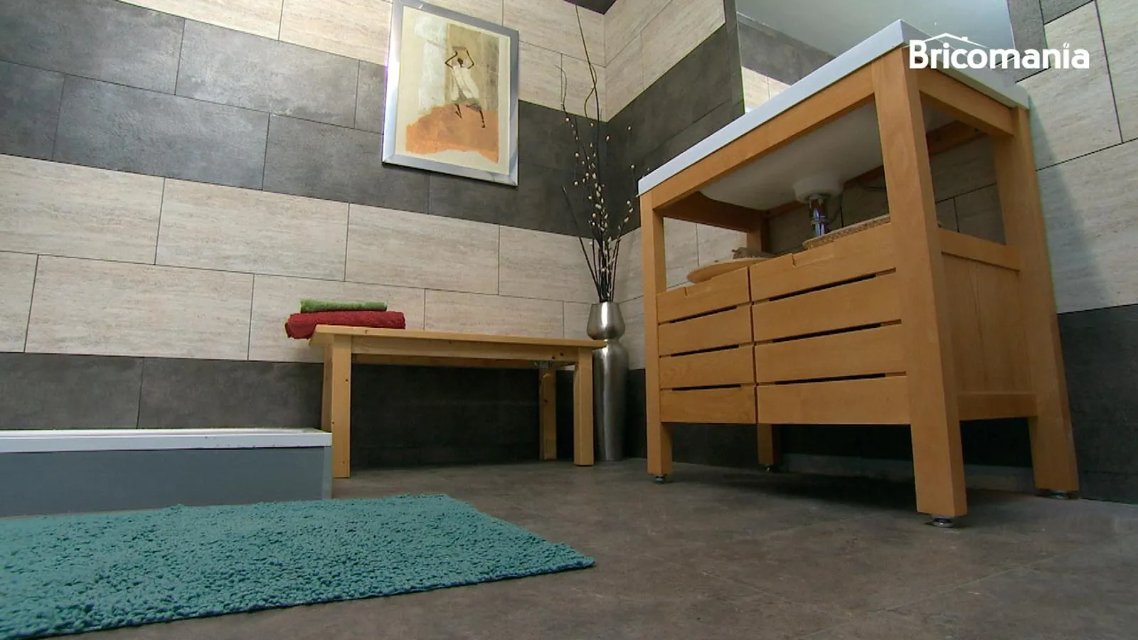 ¡Menudo cambio! Con estas losetas que imitan perfectamente la cerámica, hemos transformado radicalmente el aspecto de este cuarto de baño.