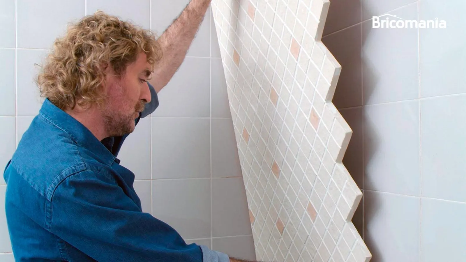 A continuación, colocamos el segundo panel decorativo para revestir la pared del cuarto de baño que, por su diseño, encajará perfectamente con el primero.