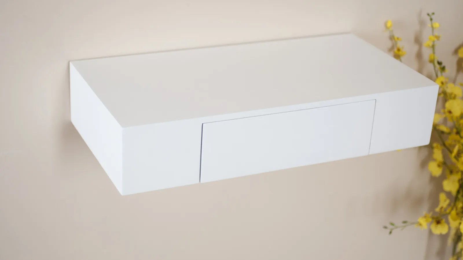 Por muy poco espacio que tengáis en el recibidor de vuestra casa, no tenéis porqué renunciar a una práctica cajonera suspendida como ésta. Ocupa muy poco sitio y su montaje es realmente sencillo.