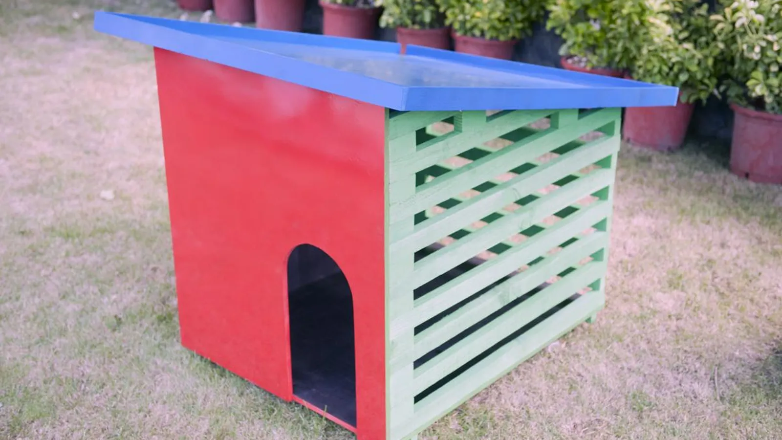 De esta forma tan sencilla habremos conseguido hacer una caseta de perro alegre y actual a la medida de nuestra mascota. A la hora de ubicar el habitáculo del animal en el jardín, es aconsejable orientarlo hacia el sur.