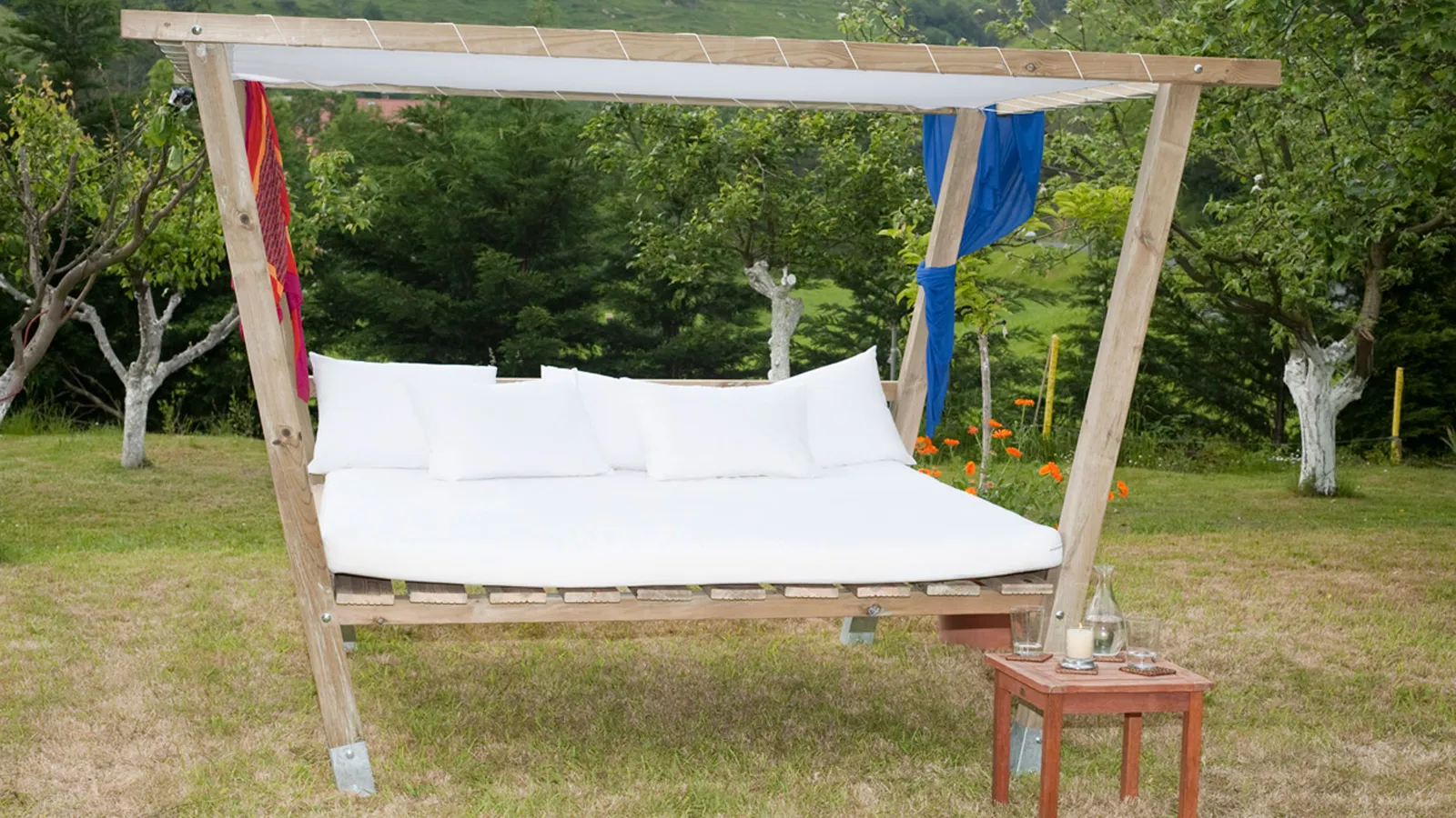 Para terminar, cubrimos nuestro Chill Out con un toldo de lona, amarrándolo bien a la estructura. Gracias a esta tela, conseguiremos un lugar agradable y protegido del sol.