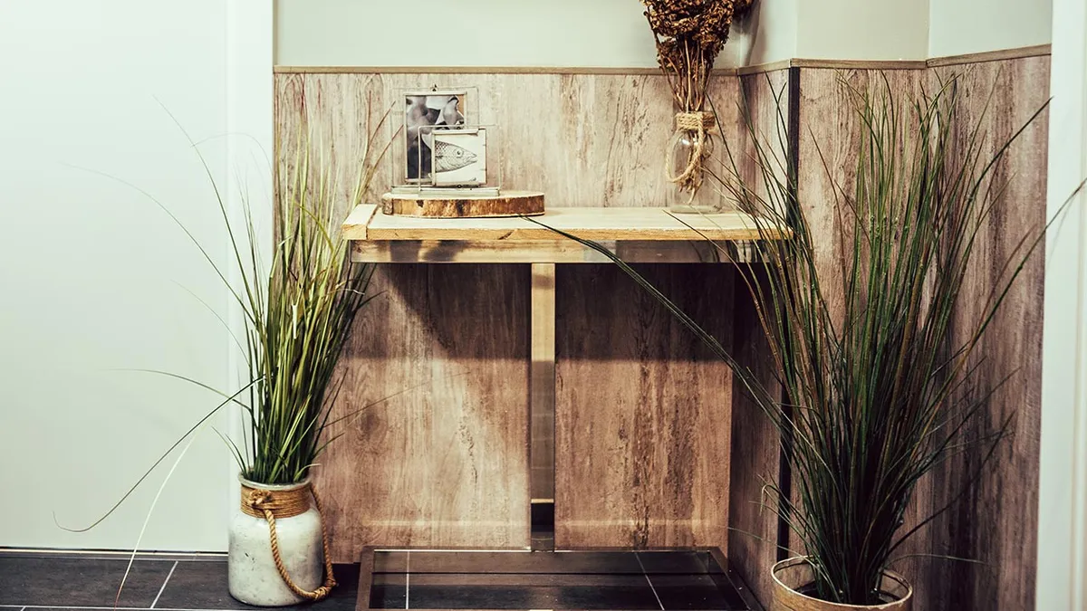En esta ocasión, vamos a decorar las paredes de este pequeño hall instalando un sencillo friso de vinílo. Un trabajo fácil y económico, con el que daremos calidez al espacio.
