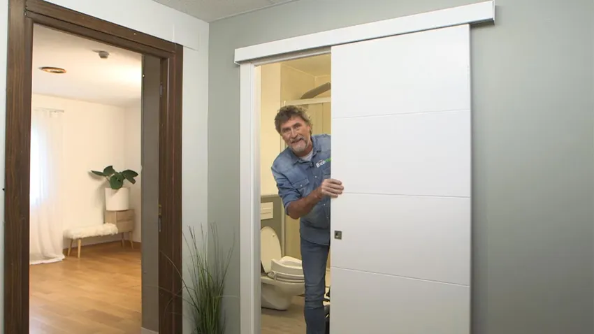 Os enseñamos paso a paso cómo podéis convertir una sencilla puerta abatible en una puerta corredera. Así podréis aprovechar al máximo el espacio.