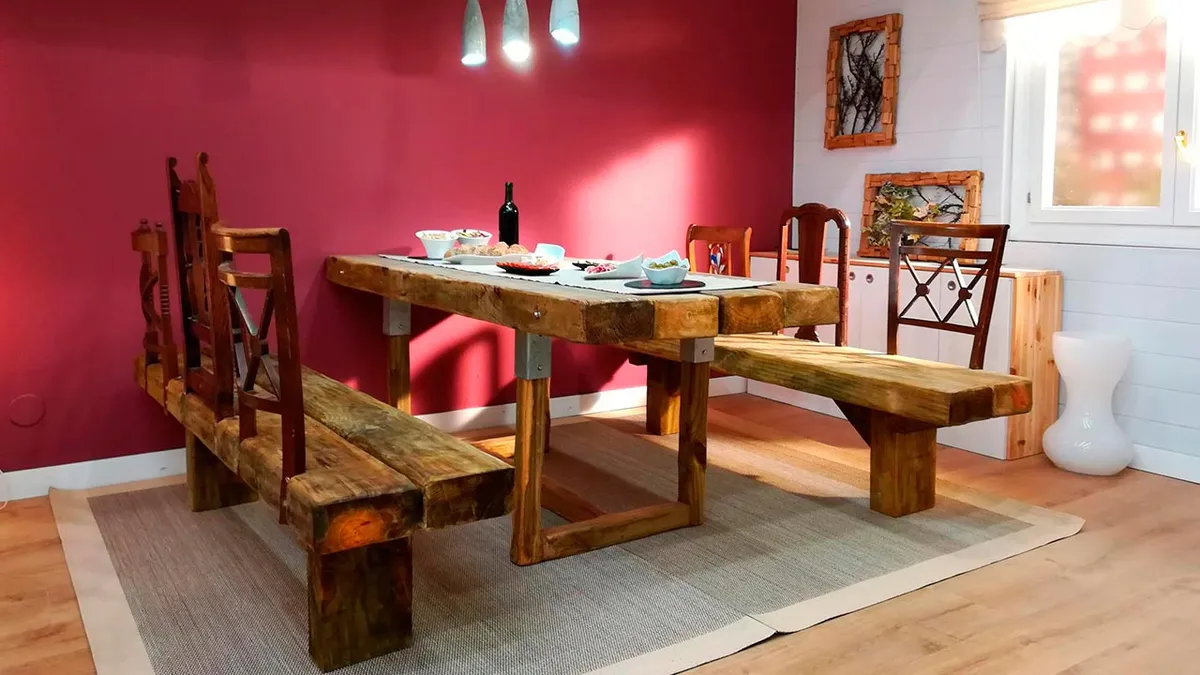 Vamos a crear unos bancos de madera que completarán el conjunto de la mesa con traviesas que hicimos en un programa anterior.