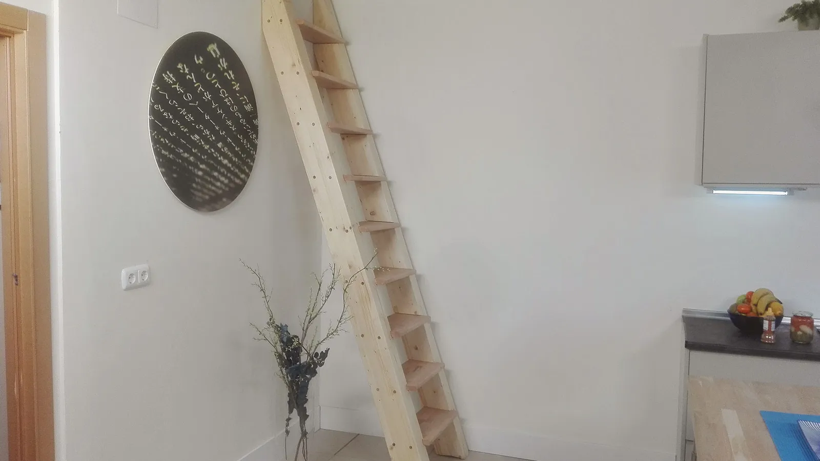 Ya tenemos la escalera de madera lista para ser usada. Gracias a este trabajo, podremos subir y bajar al altillo con comodidad y de manera segura.