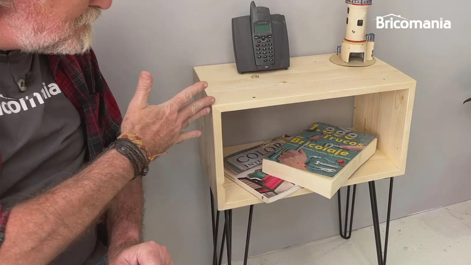 En este trabajo de bricolaje te mostramos cómo hacer una mesita de noche de manera muy sencilla utilizando unas tablas de madera de pino y unas patas de mesa.