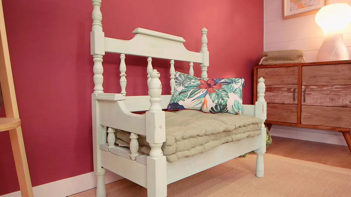Usando el cabecero y el pie de una cama pequeña, vamos a ver paso a paso cómo hacer un práctico y decorativo sillón de estilo provenzal.