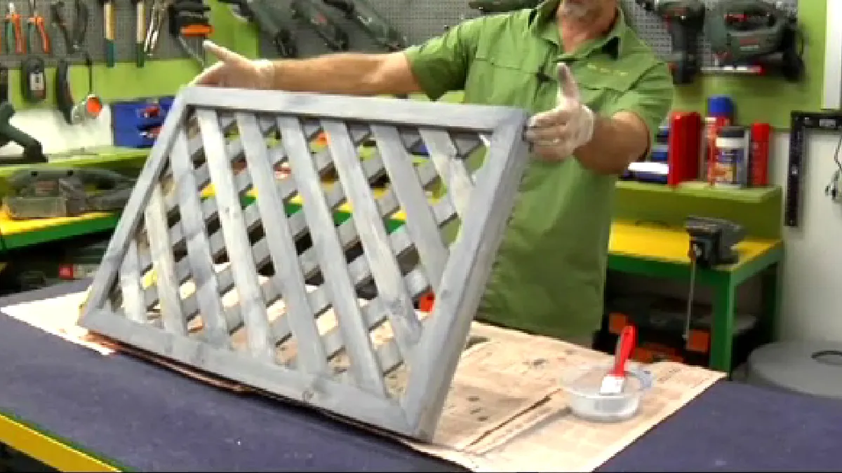 Para garantizarnos un perfecto acabado, antes de dar el barniz que hayamos escogido, teñiremos la celosía con un tinte al agua que penetrará en la madera y mejorará sus agarre. Después de aplicarlo, respetaremos el tiempo de secado que indique el fabricante.
