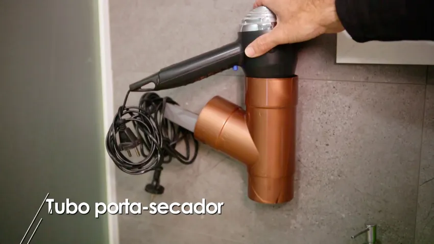 Os enseñamos a convertir una pieza de unión de fontanería en un alojamiento útil y cómodo para nuestro secador y la plancha de pelo. Vemos el paso a paso para hacer un porta secador con un sencillo tubo.