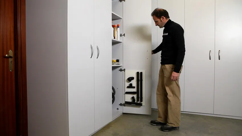 Después de encajar los accesorios del aspirador en las grapas, tendremos que sujetar la estructura a la puerta del armario, en este caso.