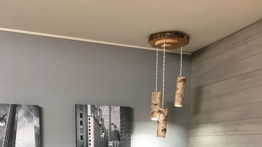 Paso a paso para hacer una lámpara con troncos y ramas de madera