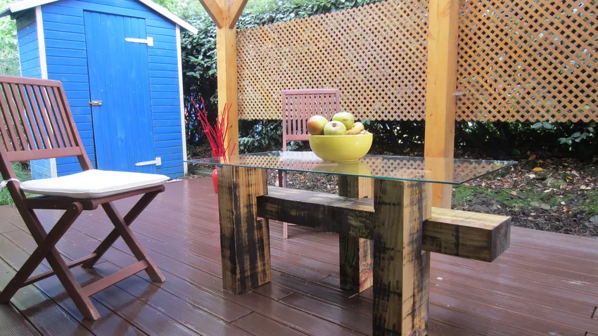 Os proponemos hacer una mesa de madera y cristal reutilizando unas traviesas de jardinería. A continuación os mostramos el paso a paso de este trabajo de carpintería.