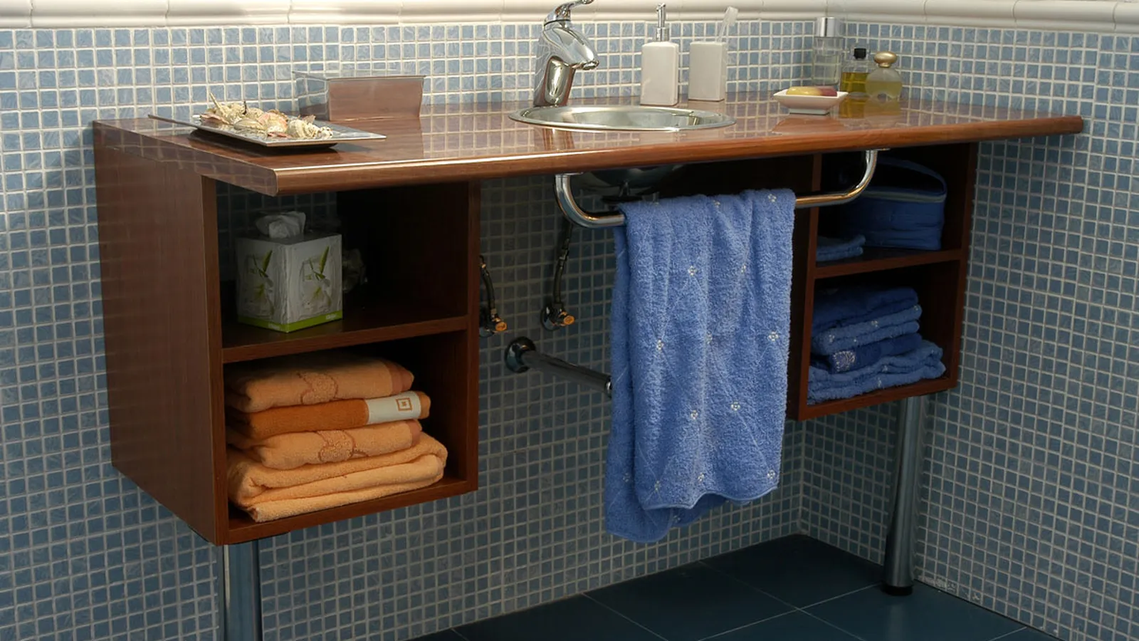 Fijaremos el toallero, también con unos tirafondos, que pondremos bajo la encimera.