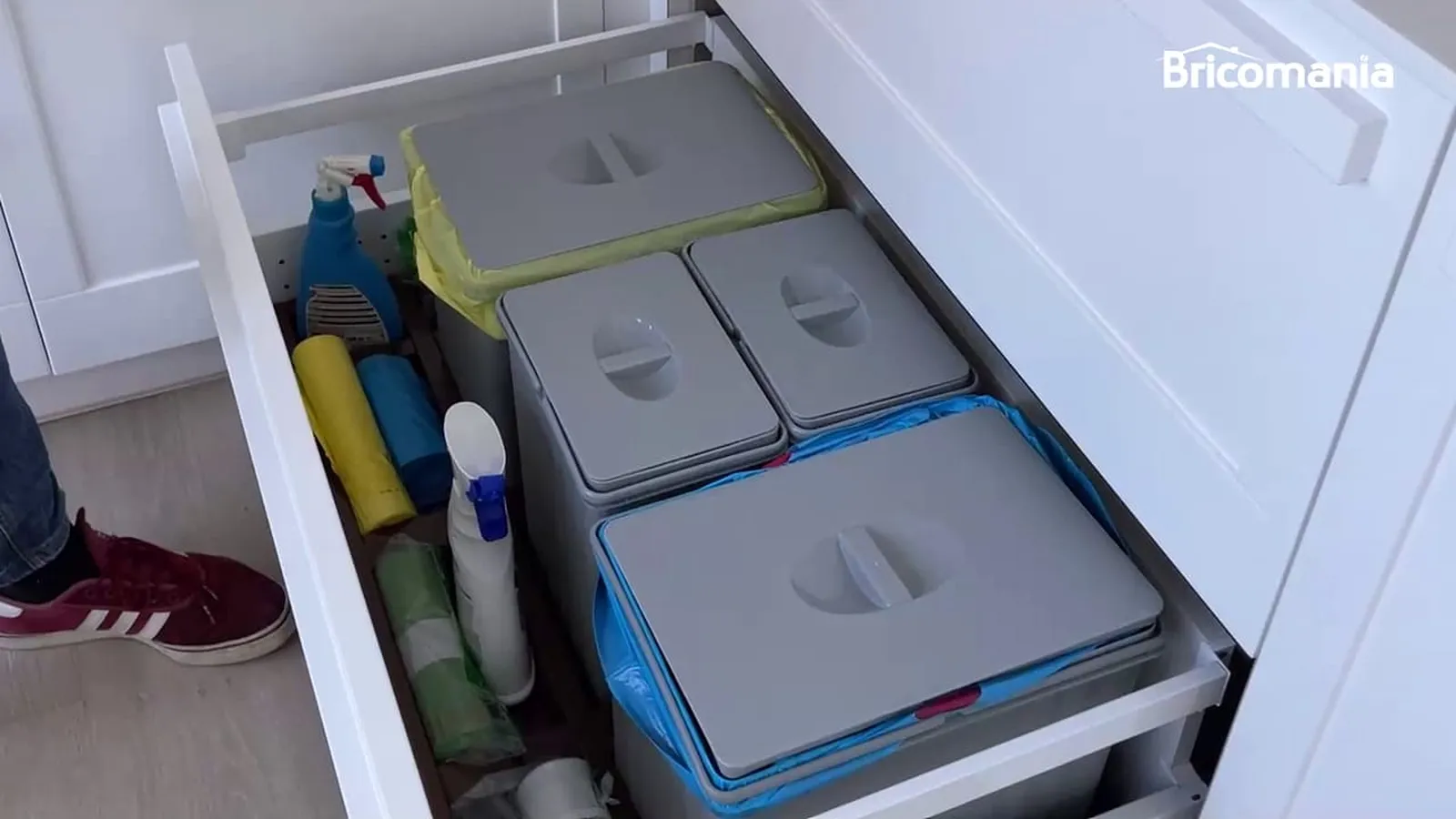 Para finalizar, instalamos el organizador en el cajón y colocamos todos nuestros productos de limpieza. Ya tenemos nuestra bandeja a medida lista para su uso. ¡Conseguiremos ordenar los cajones!