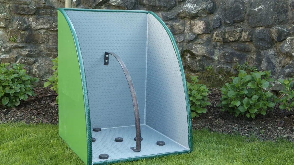Construir este juego nos resultará muy sencillo. Con un tablero de contrachapado de ocume haremos la caja en la que colocaremos la pletina de hierro. Forraremos su interior con un revestimiento de goma para proteger la madera de los golpes que se produzcan a la hora de lanzar las fichas de hierro. Remataremos nuestro trabajo colocando cuatro patas en el soporte que, en nuestro caso, serán regulables.