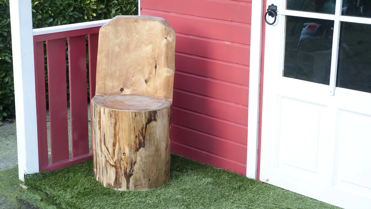 Para dar forma de silla al tronco utilizaremos una motosierra, si es con batería mejor, ya que podremos realizar cualquier movimiento sin tener que depender del cable. Después, simplemente lijamos la superficie y la barnizamos.