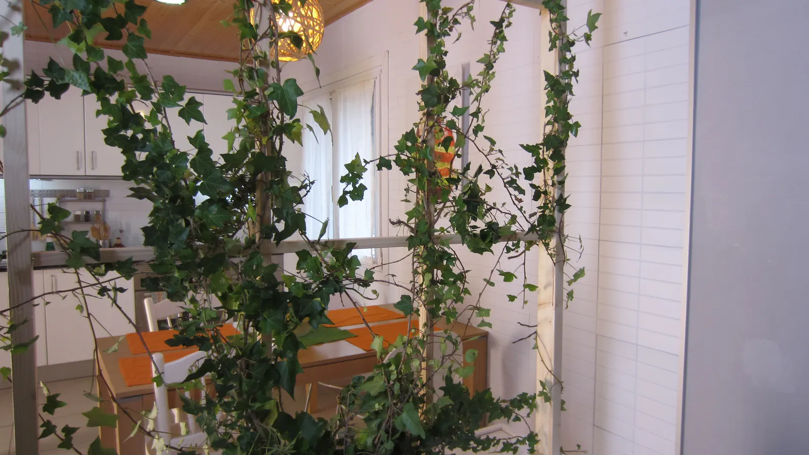 Y, ¡éste es el resultado! Una ventana decorativa que separa perfectamente dos ambientes, aportando un toque de frescor muy personal tanto a la cocina como al salón.