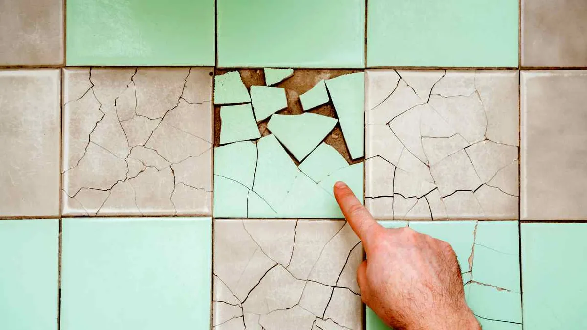 Una vez que hayas retirado las juntas, golpea la baldosa dañada desde el centro hacia los bordes y ve rompiéndola poco a poco hasta retirarla completamente.
