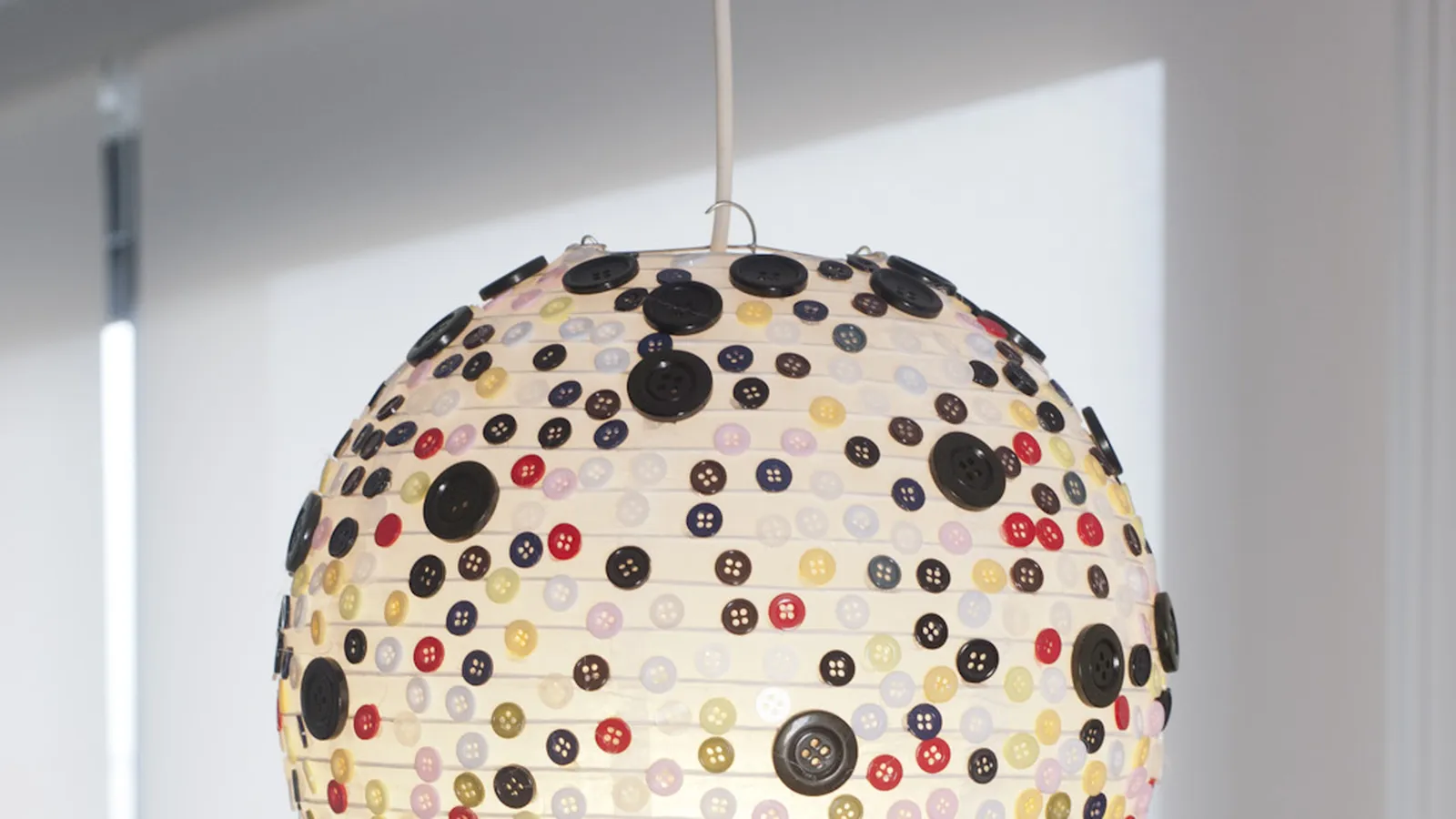Para convertir una simple lámpara de papel en una pieza única y personal, desde Bricomanía vamos a reciclar unos botones que tenemos guardados en un bote desde hace mucho tiempo y apenas los utilizamos.