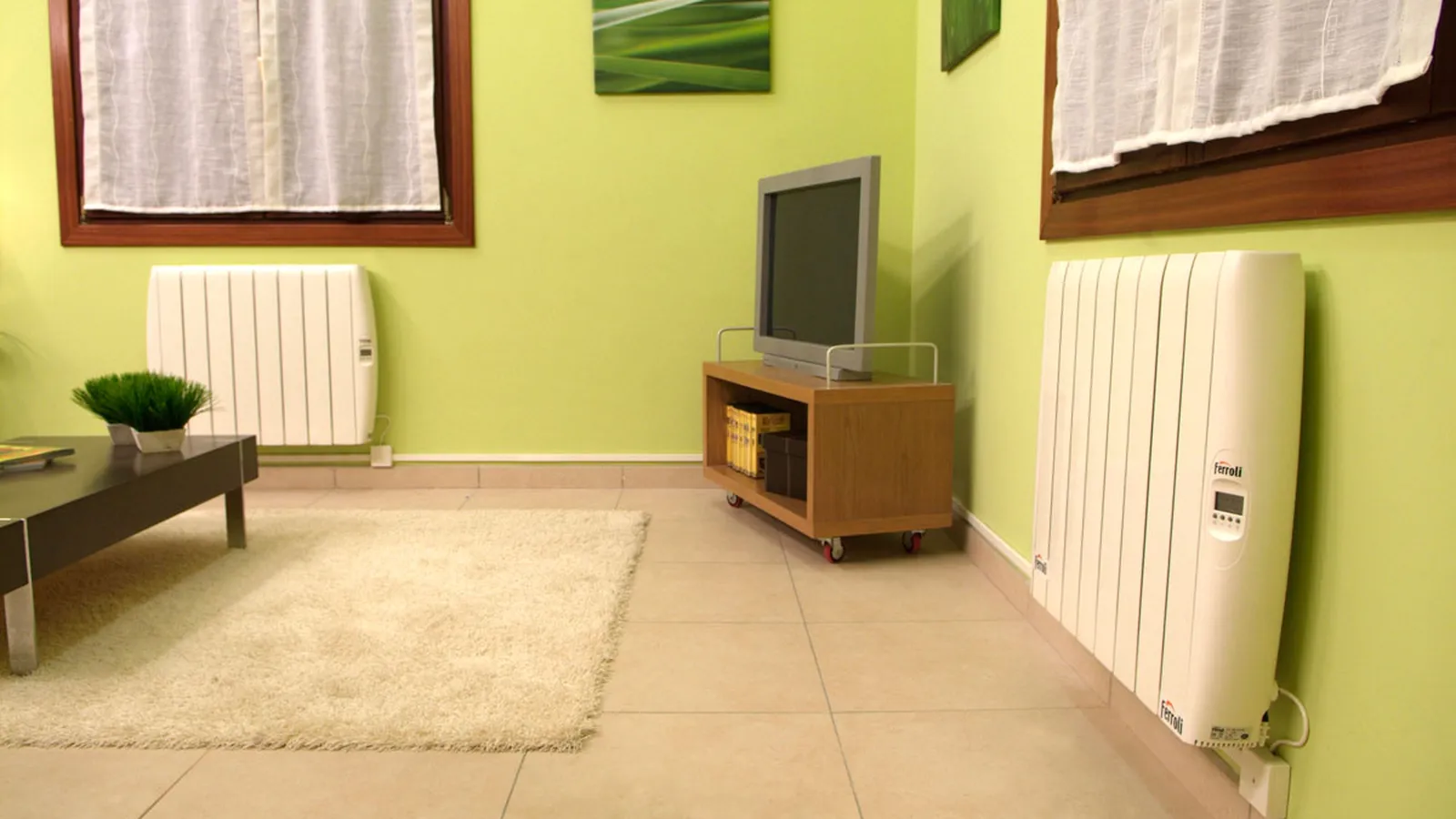 Comenzaremos presentando los radiadores en su posición; nosotros los vamos a colocar debajo de las ventanas, así evitaremos que las posibles filtraciones de aire enfríen la estancia.