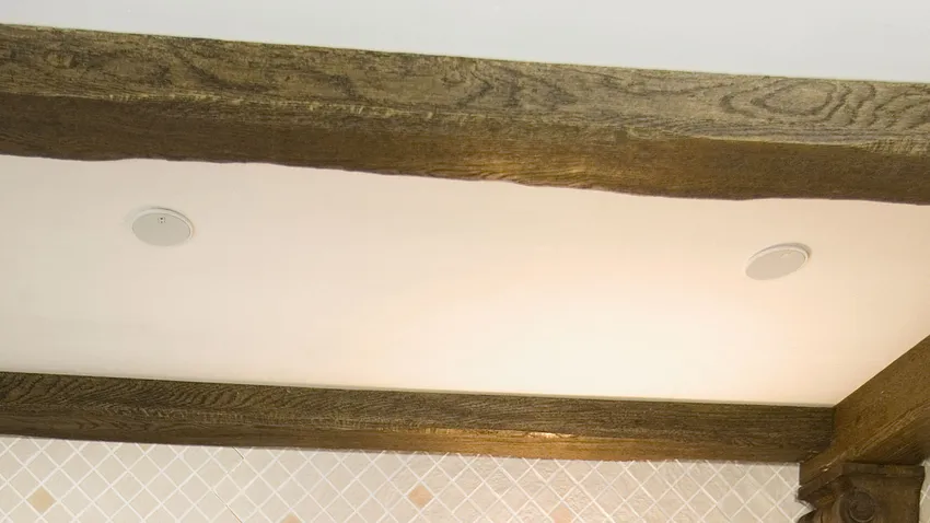 Marcamos en el techo los puntos donde vamos a hacer los orificios para alojar los altavoces y con el detector de metales, comprobamos que no hay ningún tubo ni cable que podamos dañar a la hora de taladrar.