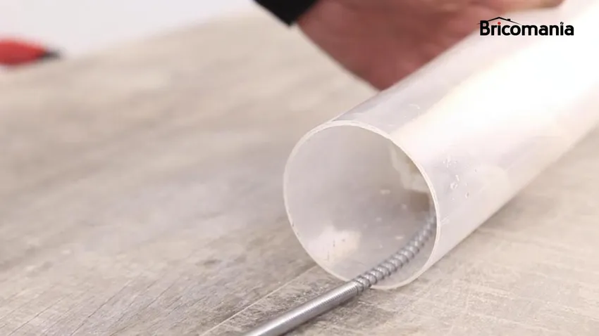 A medida que introduces el muelle, girando, empujas la suciedad que tapona la tubería hacia adelante. Al sacar el muelle, el efecto es de arrastre.