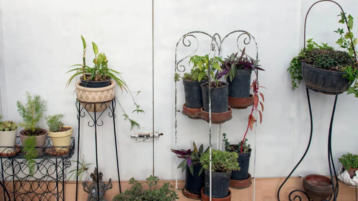Un macetero de hierro es una opción muy estable, especialmente si vas a colocar plantas grandes o pesadas.