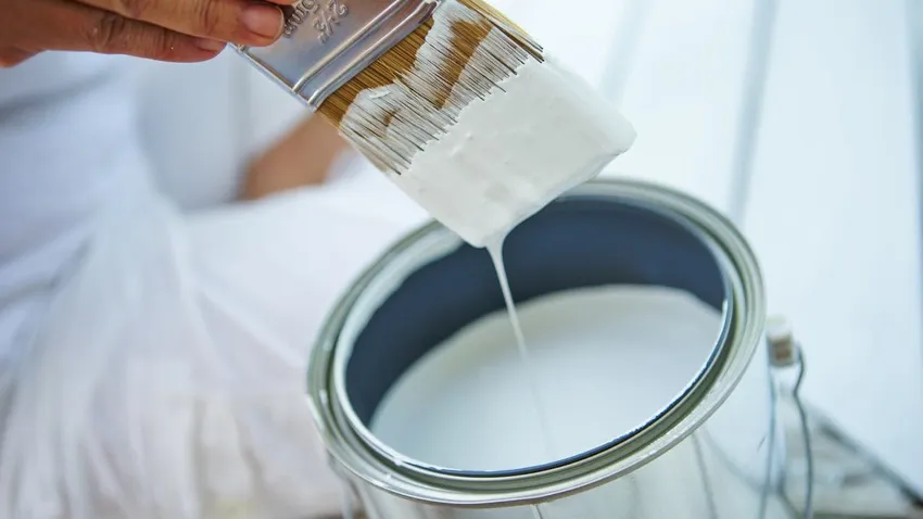 Cuando la superficie esté seca, mezclamos la pintura y aplicamos una primera capa con una brocha, un rodillo o una pistola de pintar.