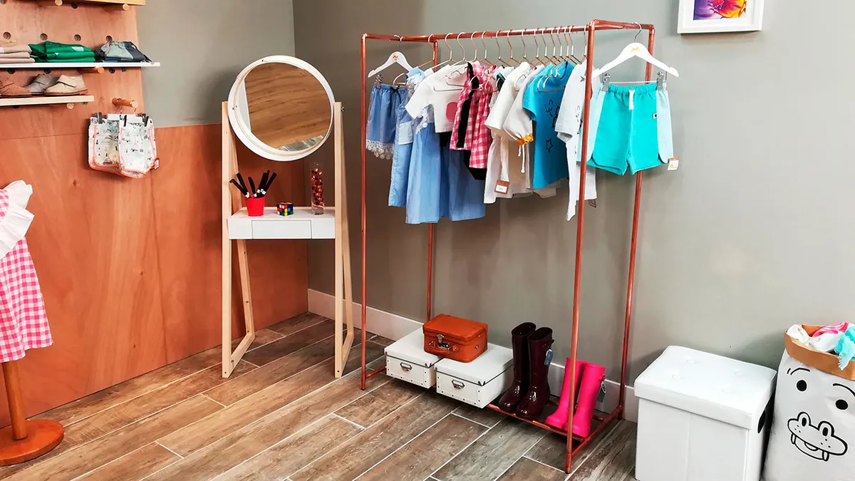 Si estás pensando montar un negocio de ropa o quieres actualizar tu tienda esta propuesta seguro que te interesa. Se trata de un burro perchero construido únicamente con tubos de cobre. Un montaje sencillo y un presupuesto mínimo para una pieza que dará estilo al local.
